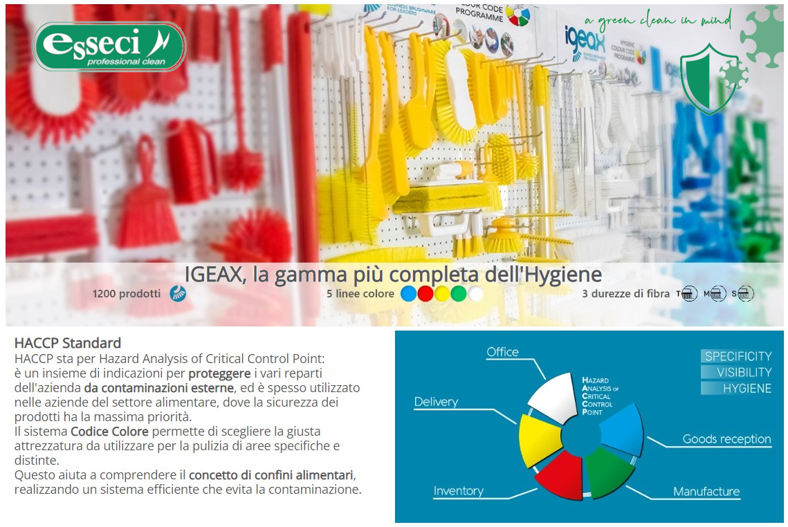 Per la sicurezza nelle aziende alimentari, nella gestione del rischio legato alla presenza di corpi estranei nel prodotto, la linea “IGEAX DETECTABLE” per la pulizia in campo alimentare e in tutti quei luoghi dove la sicurezza deve essere garantita tramite strumenti di rilevamento.