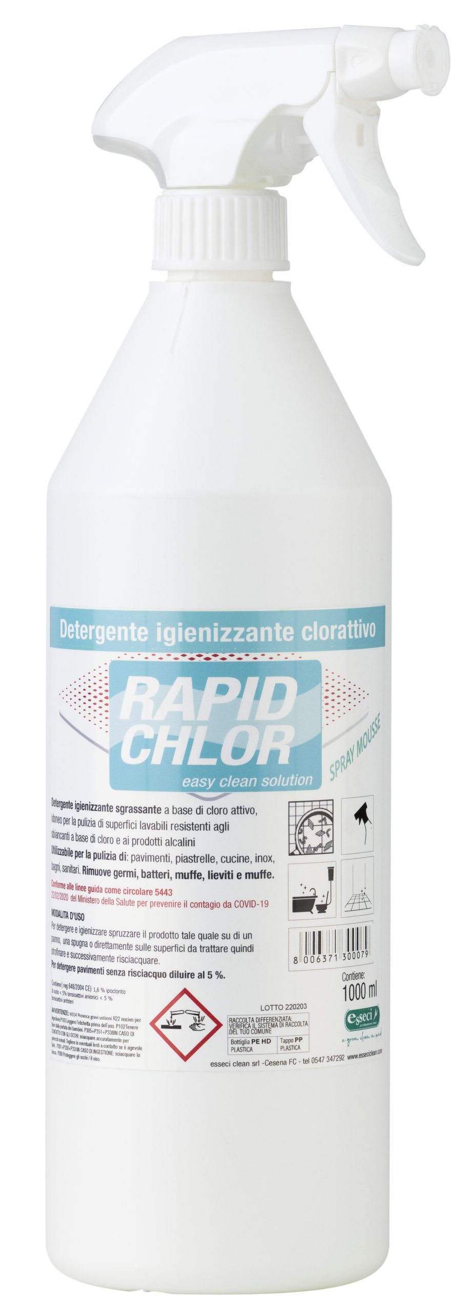 1013-1 RAPID CHLOR DETERGENTE IGIENIZZANTE CLORO ATTIVO LT.1