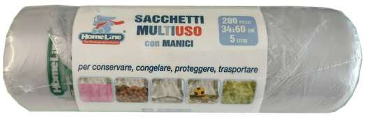 Rotolo Disteso 200 Sacchi 22+12x60cm / 8my Colore TRASPARENTE, Capacità 10Lt Con Soffietti