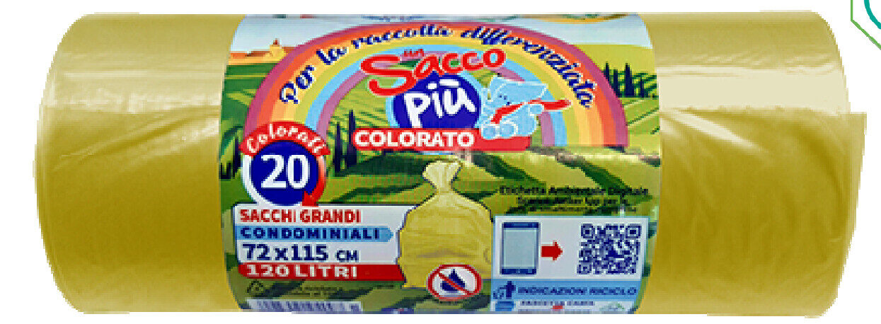 ROTOLO 20 SACCHI GIALLI TRASPARENTI R.D. CONDOMINIALE 72X115cm 120lt antigoccia